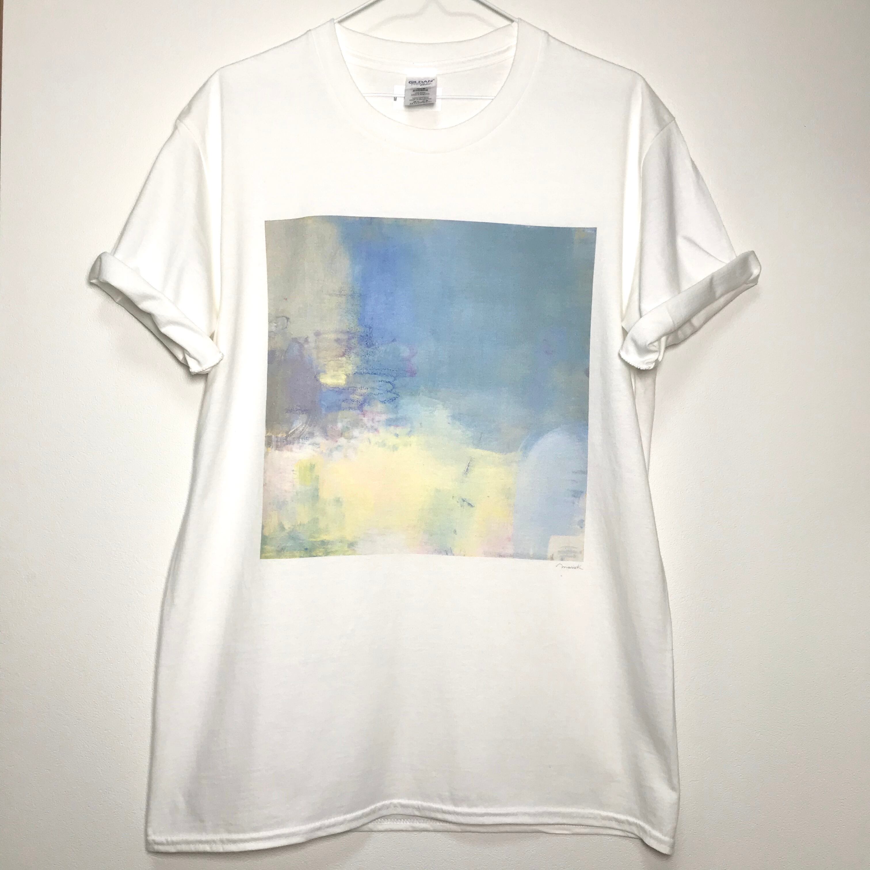 油彩プリントの半袖Tシャツです。