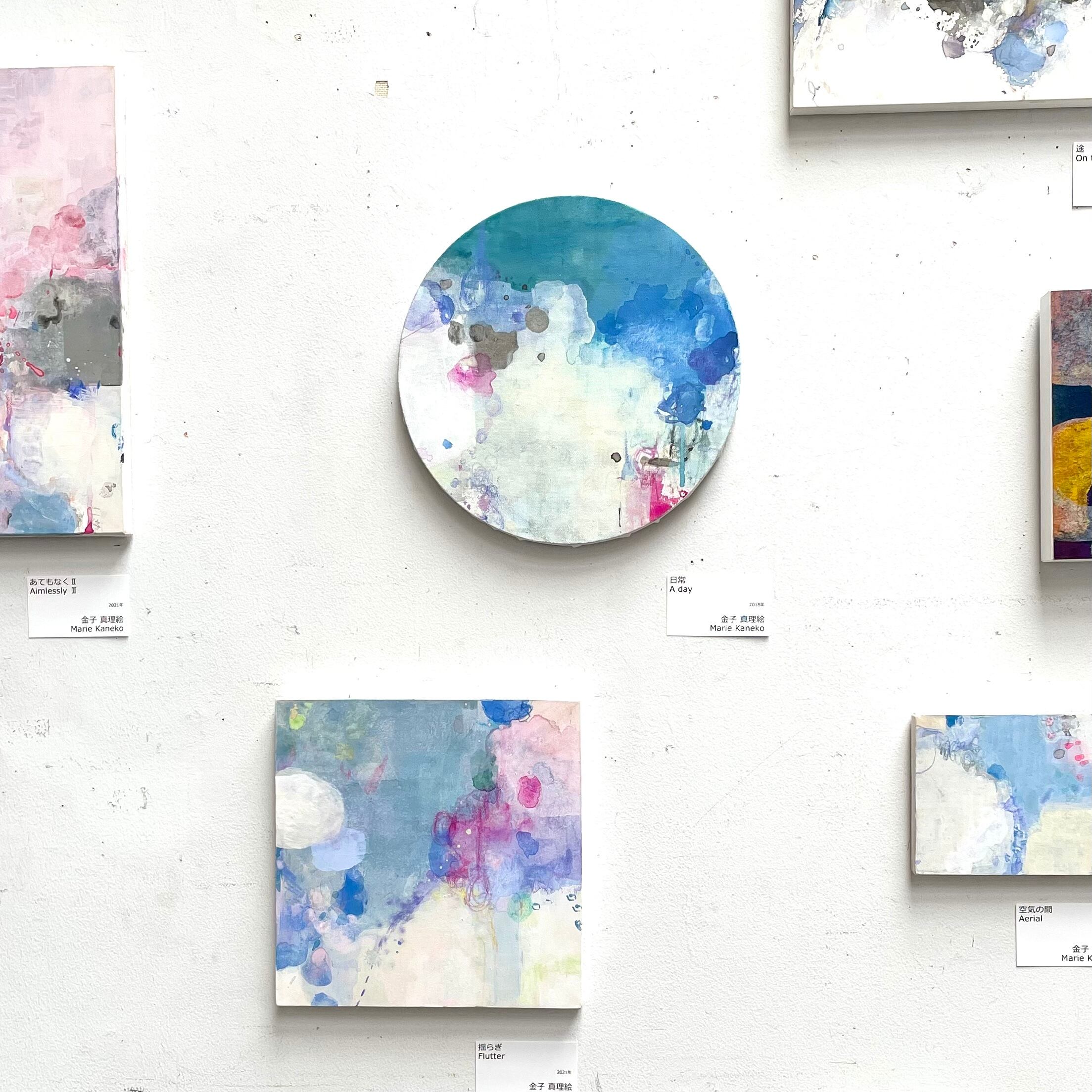 「日常」 直径300㎜ キャンバス、アクリル絵具、水彩クレヨン 2018年制作 ※送料込 円形キャンバスの水彩作品です。 そのままピンなどで壁掛けできます。